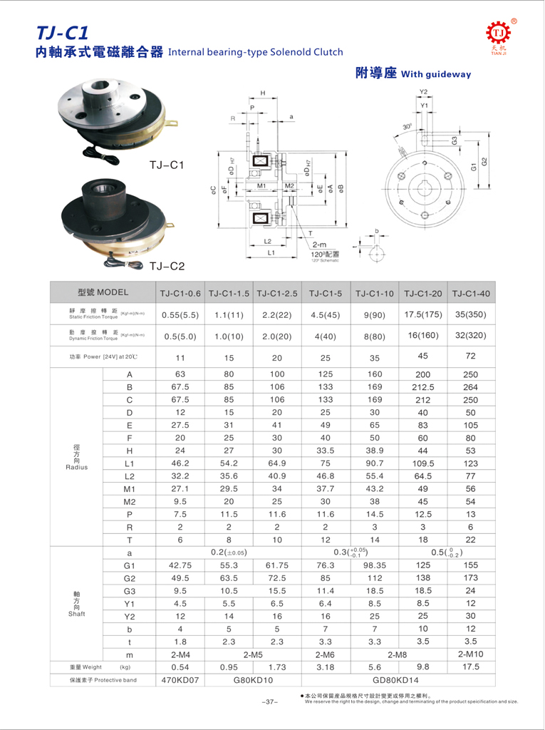 6、電磁離合器及制動(dòng)器為b級(jí)絕緣,正常溫升40℃。極限熱平衡時(shí)的工作溫度不允許超過(guò)100℃,否則線圈與摩擦部分容易發(fā)生破壞。