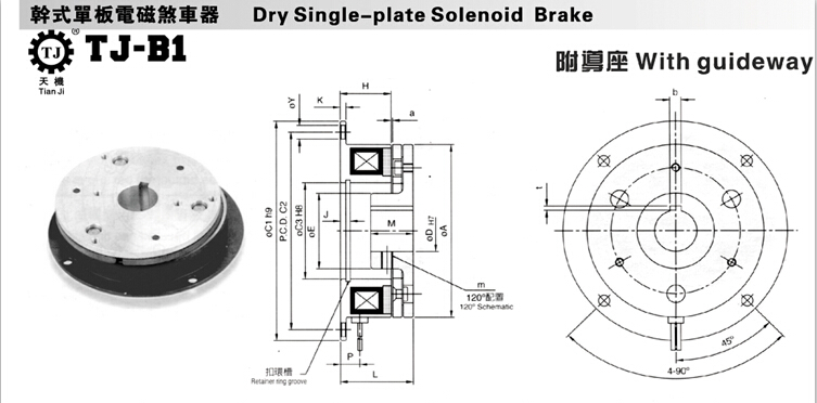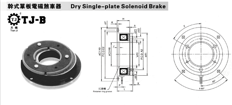 東莞天機(jī)傳動的電磁制動器(電磁剎車器)有三款分別為:干式單板電磁制動器(TJ-B)、干式單板電磁制動器帶導(dǎo)座(TJ-B1)、干式單板電磁制動器服軸承導(dǎo)座(TJ-B2)